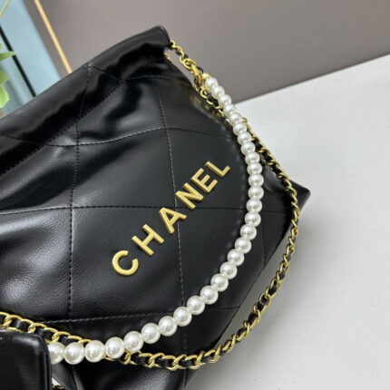 CHANEL Pearl garbage bag black size: 23*28*22*7cm