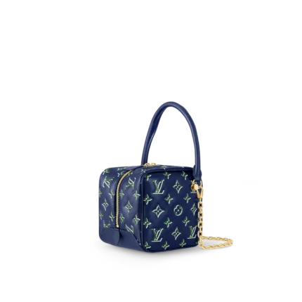 Made from Monopaname lambskin, the Square Bag features a green-and-blue Monogram pattern, evocative of the colors of a Parisian street-sign.