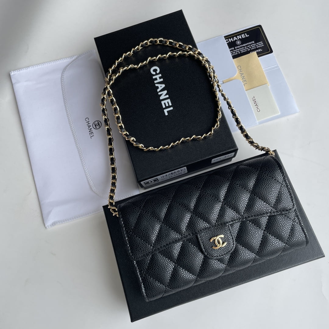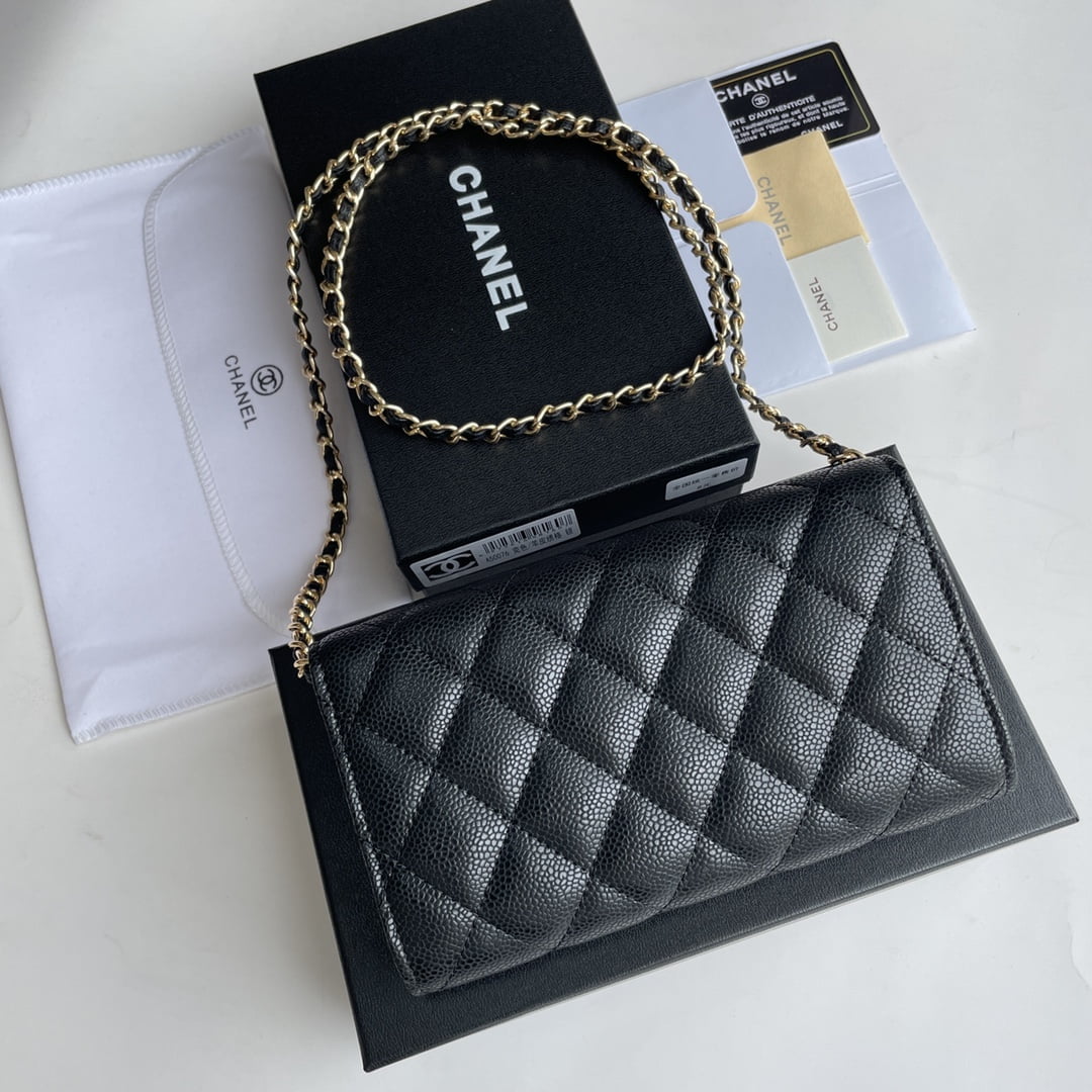 Chanel chain crossbody bag Cowhide with diamond lattice caviar gold hardware black A50076 size: 18*10.5*3.5cm