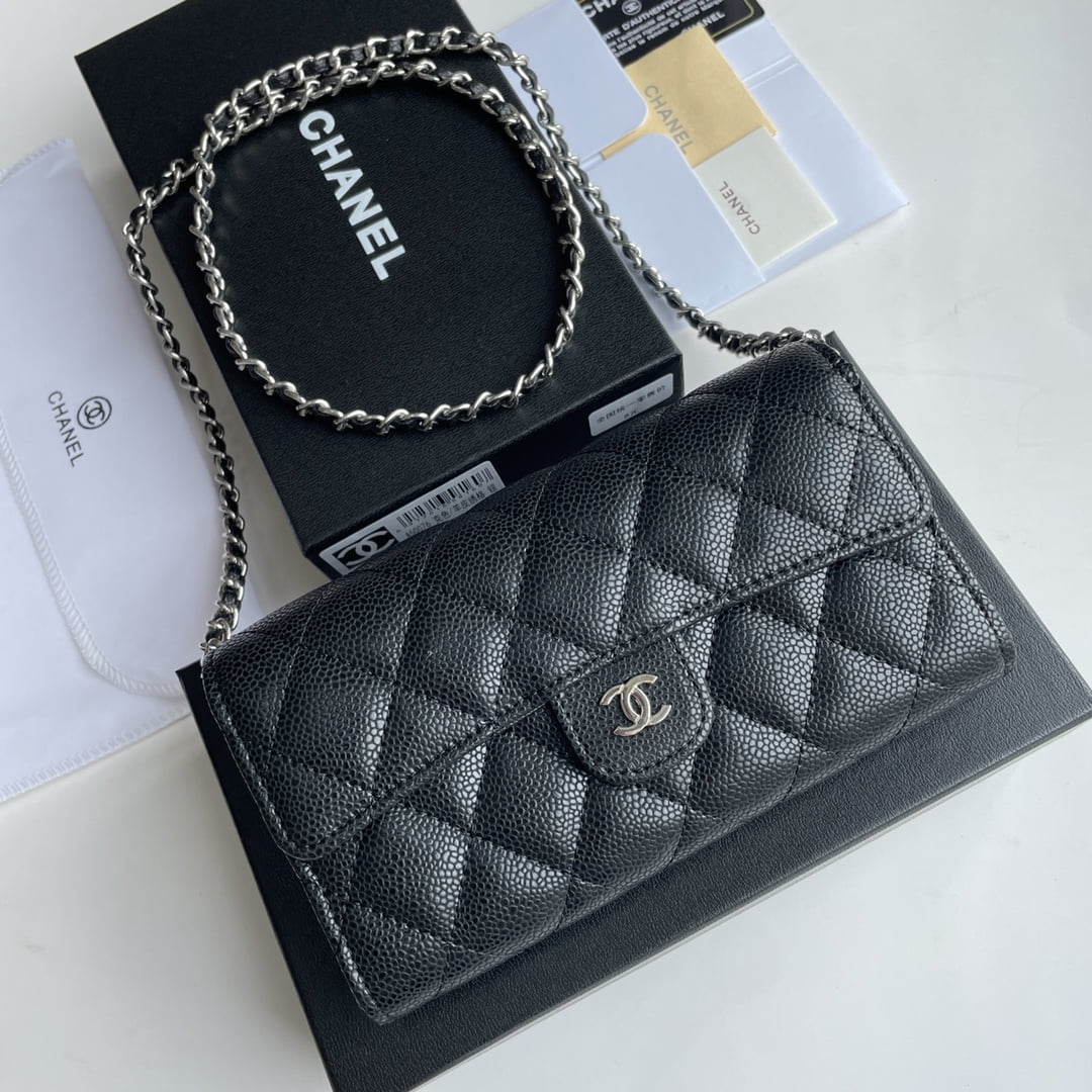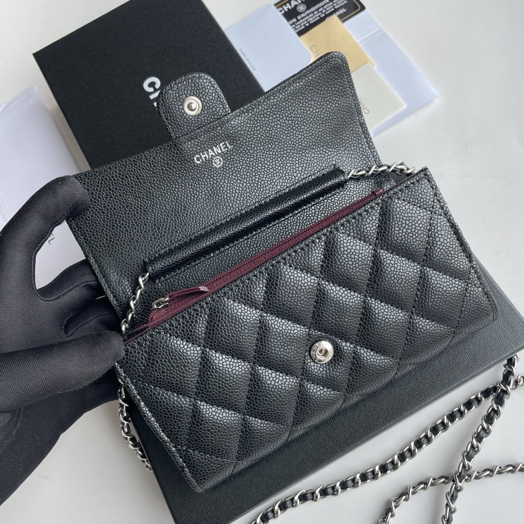 Chanel chain crossbody bag Cowhide with diamond lattice caviar Sliver hardware Black A50076 size: 18*10.5*3.5cm