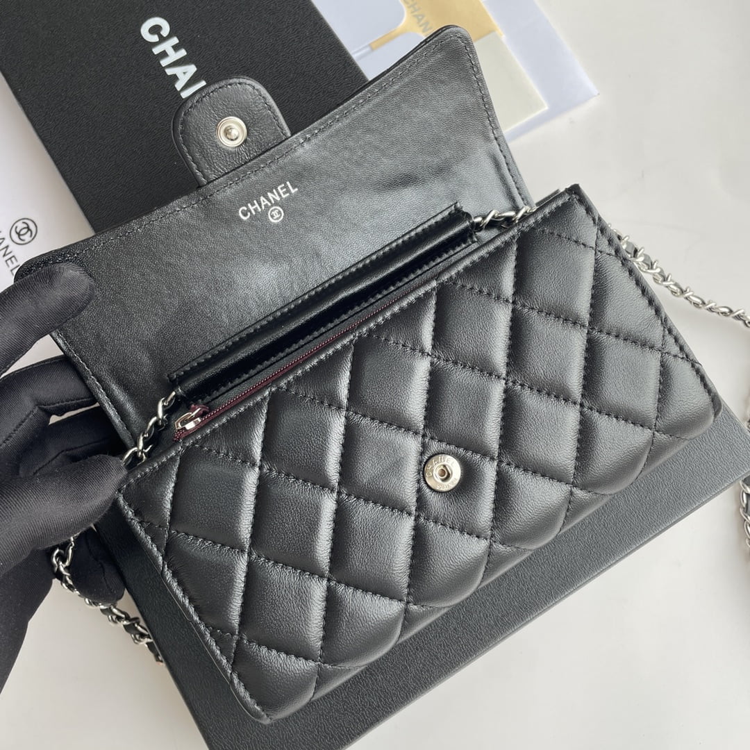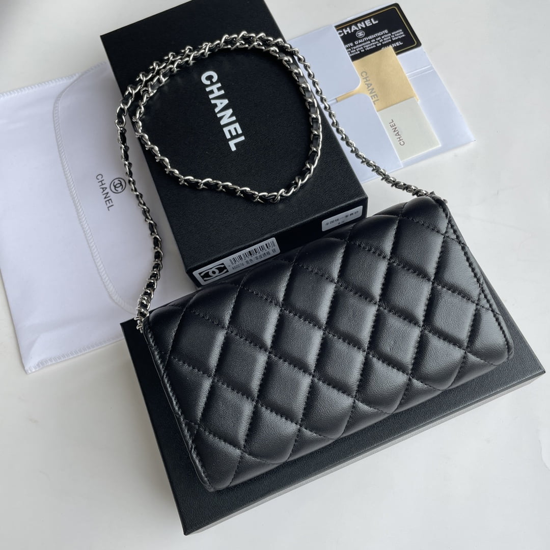 Chanel chain crossbody bag Cowhide with diamond lattice sliver hardware black A50076 size: 18*10.5*3.5cm