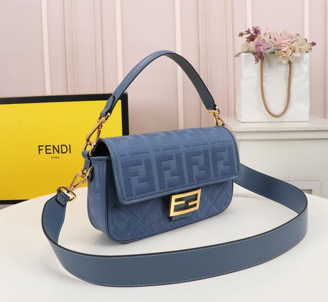 FENDI Baguette F embroidery Light Blue shoulderbag F2029 Size: 26*5*15CM