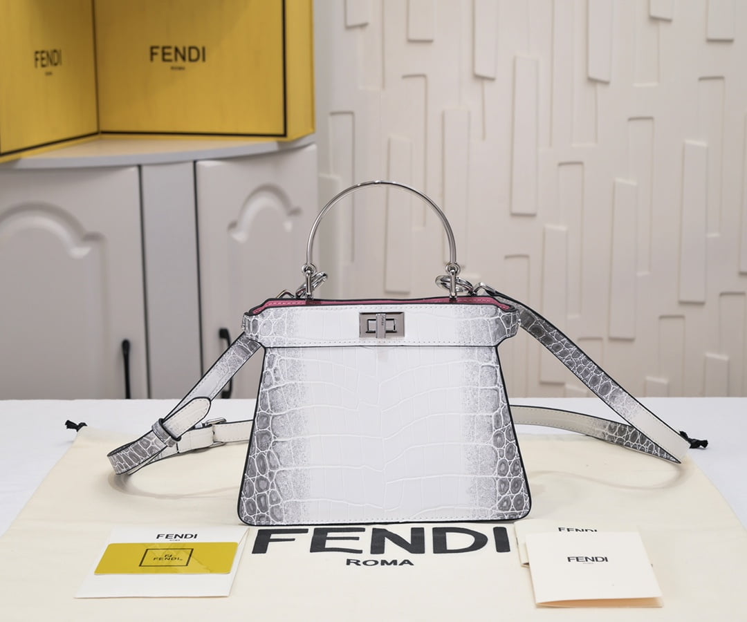 FENDI Peekaboo Crocodile Leather sliver hardware 23ss 335 Size: 20*15cm