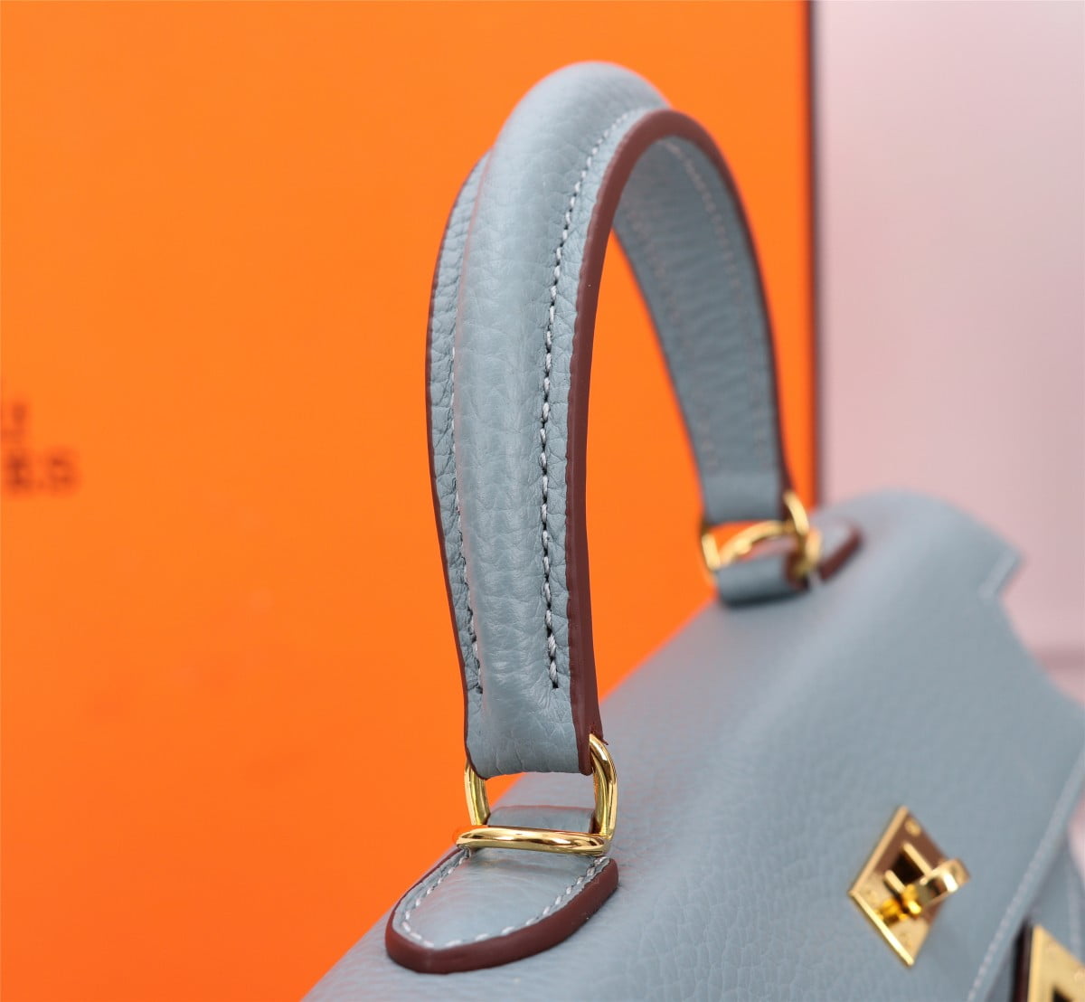 Hermes Kelly Linen blue Pure leather fabric wear-resistant
