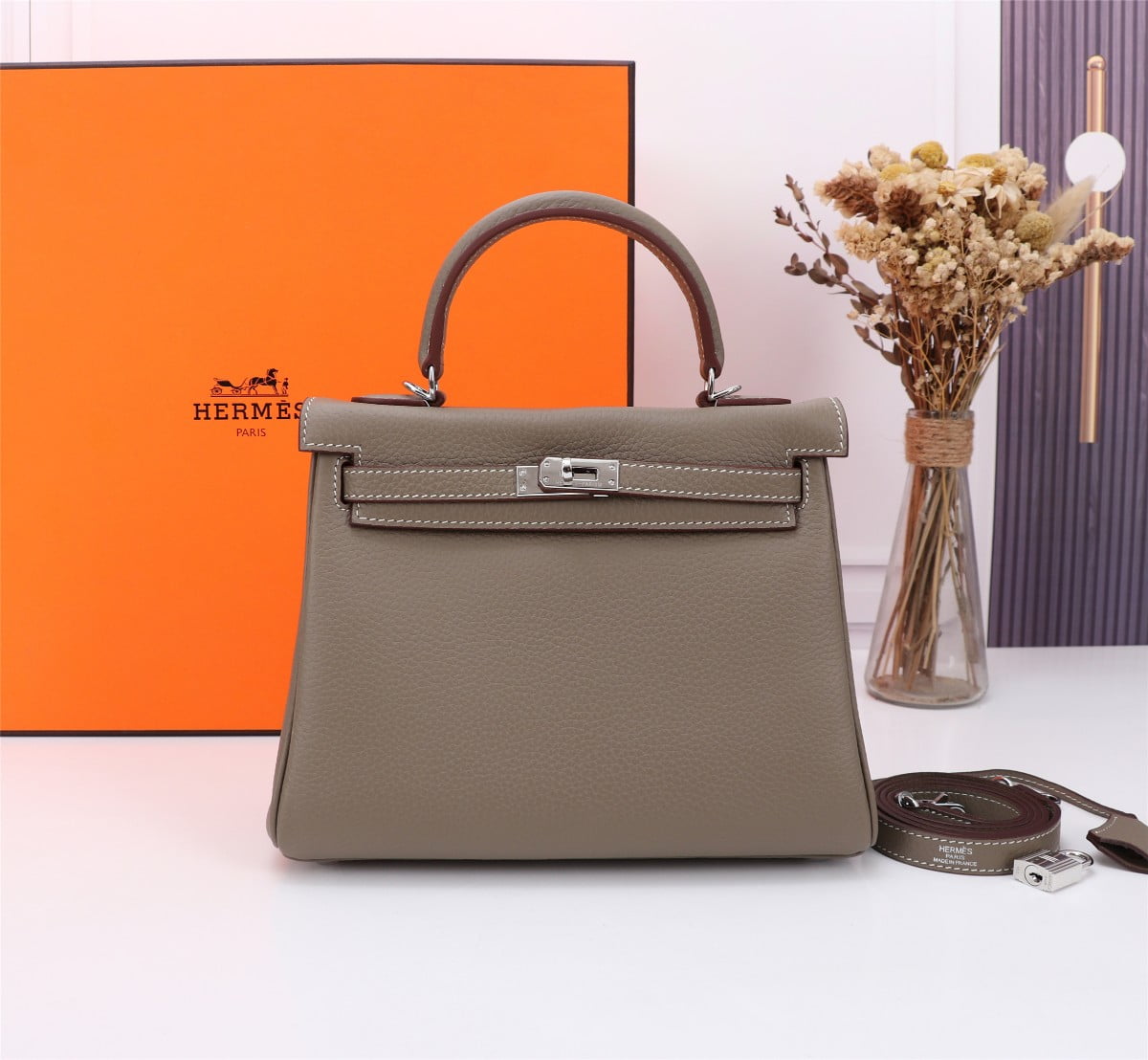 Hermes Kelly Elephant grey Pure leather fabric wear-resistant