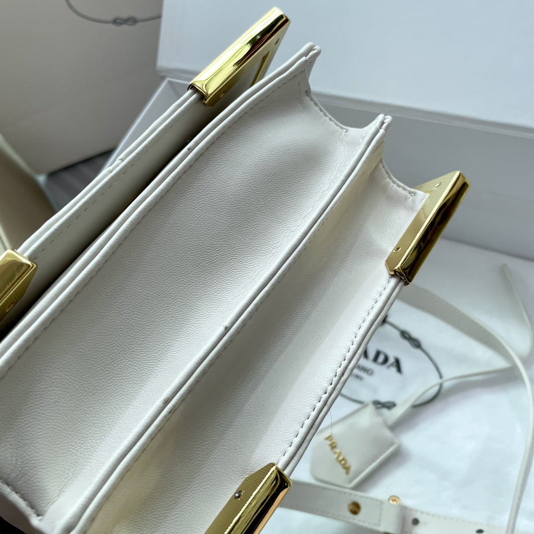 Prada Belgian calfskin shoulder bag white 1BD048 size: 20*14*8CM