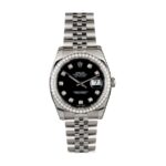 What sets the Rolex Datejust 116234 apart is its meticulous design and unparalleled craftsmanship. The case and bezel are meticulously crafted from 904L stainless steel. renowned for its corrosion resistance and polished finish. ensuring your watch maintains its lustrous shine for years to come. The gem-set bezel doesn’t just add a layer of elegance; it captivates with a sparkling brilliance that draws the eye. making it a piece that stands out in any setting. The scratch-resistant sapphire crystal provides robust protection for the dial. ensuring that the watch remains pristine even with daily use. The black dial. contrasted with gem-set indices and stainless steel stick hands. creates a sharp and sophisticated look that is both timeless and modern.