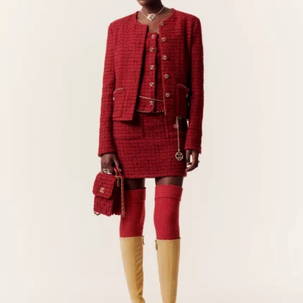 CHANEL / MINI FLAP BAG WITH TOP HANDLE Wool Tweed, Lambski & Gold-Tone Metal Red, Purple & Black Ref. AS4285 B13746 N7491