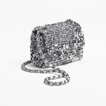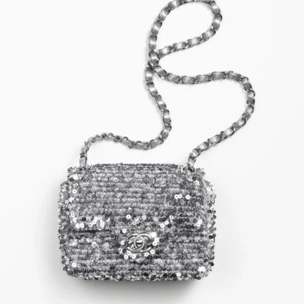 CHANEL / MINI FLAP BAG Embroidered Satin, Sequins, Glass Pearls & Ruthenium-Finish Metal Ref. AS4269 B13685 NQ843 Silver